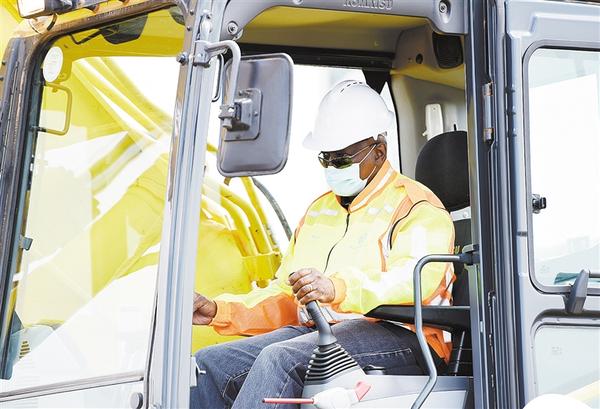 10月21日,博茨瓦納總統(tǒng)馬西西在拉莫茨瓦舉行的洛巴策供水管線(xiàn)項(xiàng)目開(kāi)工儀式上操作挖掘機(jī)。