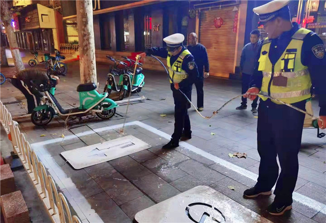10月26日晚6時(shí)許,在周口大道與文體路交叉口附近,幾名工作人員正在使用熱熔畫(huà)線機(jī),對(duì)路面上不太清晰的斑馬線進(jìn)行重新施劃?!奥访鏄?biāo)線是公路的‘無(wú)言哨兵’,覆畫(huà)后的道路交通標(biāo)線醒目美觀,一方面消除了安全隱患,保障了交通安全和暢通,另一方面也極大地美化、扮靚了沿線路域環(huán)境,成為城市文明的一道風(fēng)景線?!痹撠?fù)責(zé)人說(shuō)。