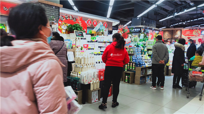 春節(jié)將至,我市各大超市處處是濃濃的年味。1月26日,記者走進(jìn)我市中心城區(qū)各大超市發(fā)現(xiàn),超市內(nèi)熙熙攘攘,生鮮果蔬區(qū)域消費(fèi)者尤多,絕大多數(shù)消費(fèi)者自覺(jué)佩戴口罩。②11