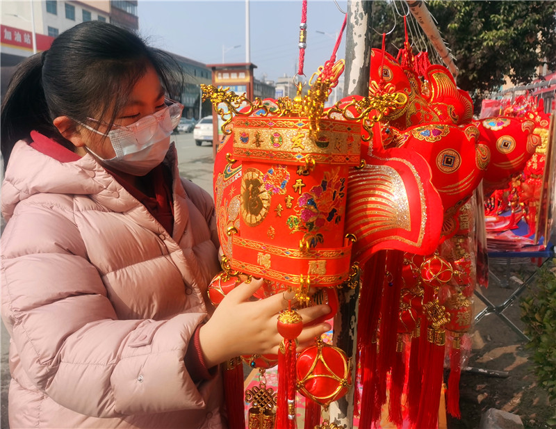 1月27日,市民在認真挑選著新年的裝飾品。春節(jié)臨近,虎年生肖飾品、對聯(lián)、中國結、福字、大紅燈籠等“紅色年貨”火了年貨市場。據(jù)了解,各種寓意祥和的春聯(lián)、以老虎為主題的各種窗花、各種飾品最受市民歡迎。③10
