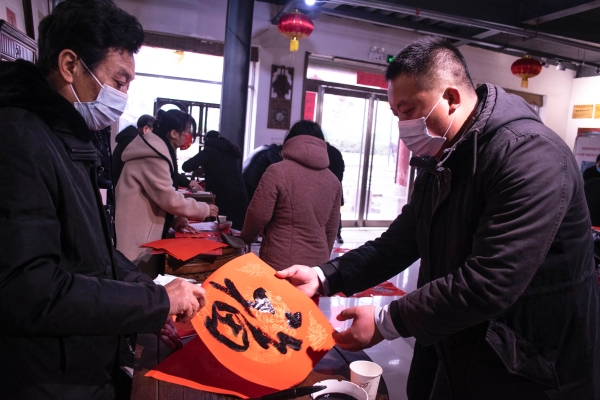 1月28日上午,市民間文藝家協(xié)會、市燈謎學專委會聯(lián)合華威民俗文化博物苑邀請霍云亭、寇成義、李國彬、靳玉峰、陳濤、游富華、何南、軒敬賢、李雯云等書法家,為市民寫春聯(lián)送祝福。窗外雪花飛舞,屋內紅紙鋪展,老中青書法家揮毫潑墨,表達新年祝福。