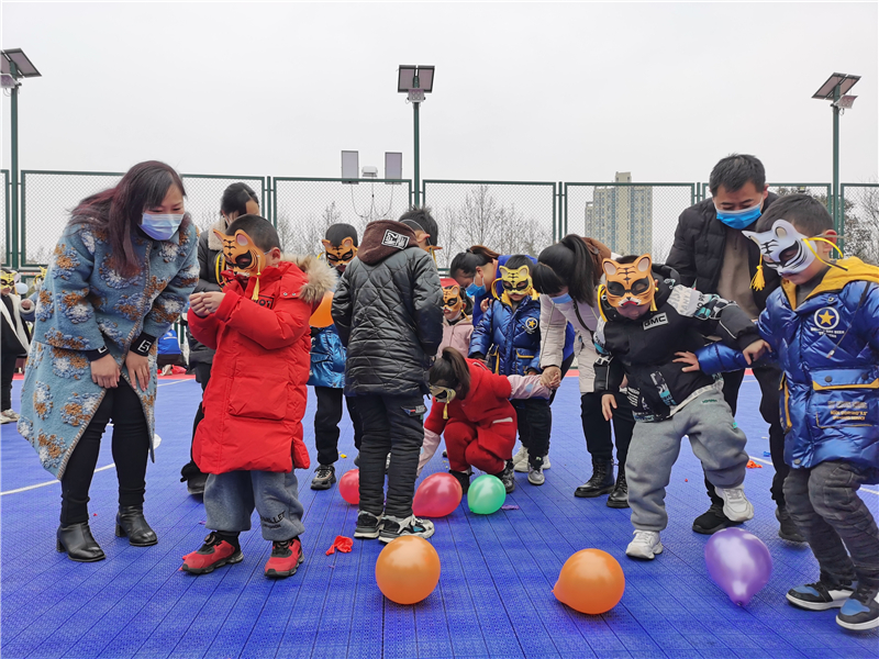 活動(dòng)現(xiàn)場(chǎng),一條條燈謎掛在繩上供大家思考,猜出謎底的“虎娃”開心地把燈謎撕下來找工作人員兌換獎(jiǎng)品,玩得不亦樂乎。同時(shí),元宵節(jié)的傳統(tǒng)食物元宵也出現(xiàn)在活動(dòng)中,社工、志愿者設(shè)置的團(tuán)團(tuán)圓圓(歡樂夾元宵)游戲,用乒乓球代替元宵,讓“虎娃”們進(jìn)行大比拼,大家從剛開始的不熟悉變?yōu)楹髞碓絹碓侥?,現(xiàn)場(chǎng)其樂融融。隨后,聲聲報(bào)福(踩氣球)游戲?qū)⒒顒?dòng)推向高潮。