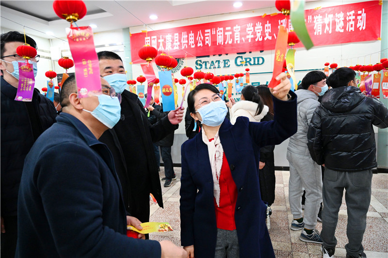 2月15日,為慶祝元宵佳節(jié),太康縣供電公司舉行“鬧元宵、學(xué)黨史、話廉潔”猜燈謎活動。燈謎不僅涵蓋黨紀(jì)法規(guī)、黨史知識,還將廉潔文化融入其中,既有趣味性,又有知識性,活躍了節(jié)日氣氛。