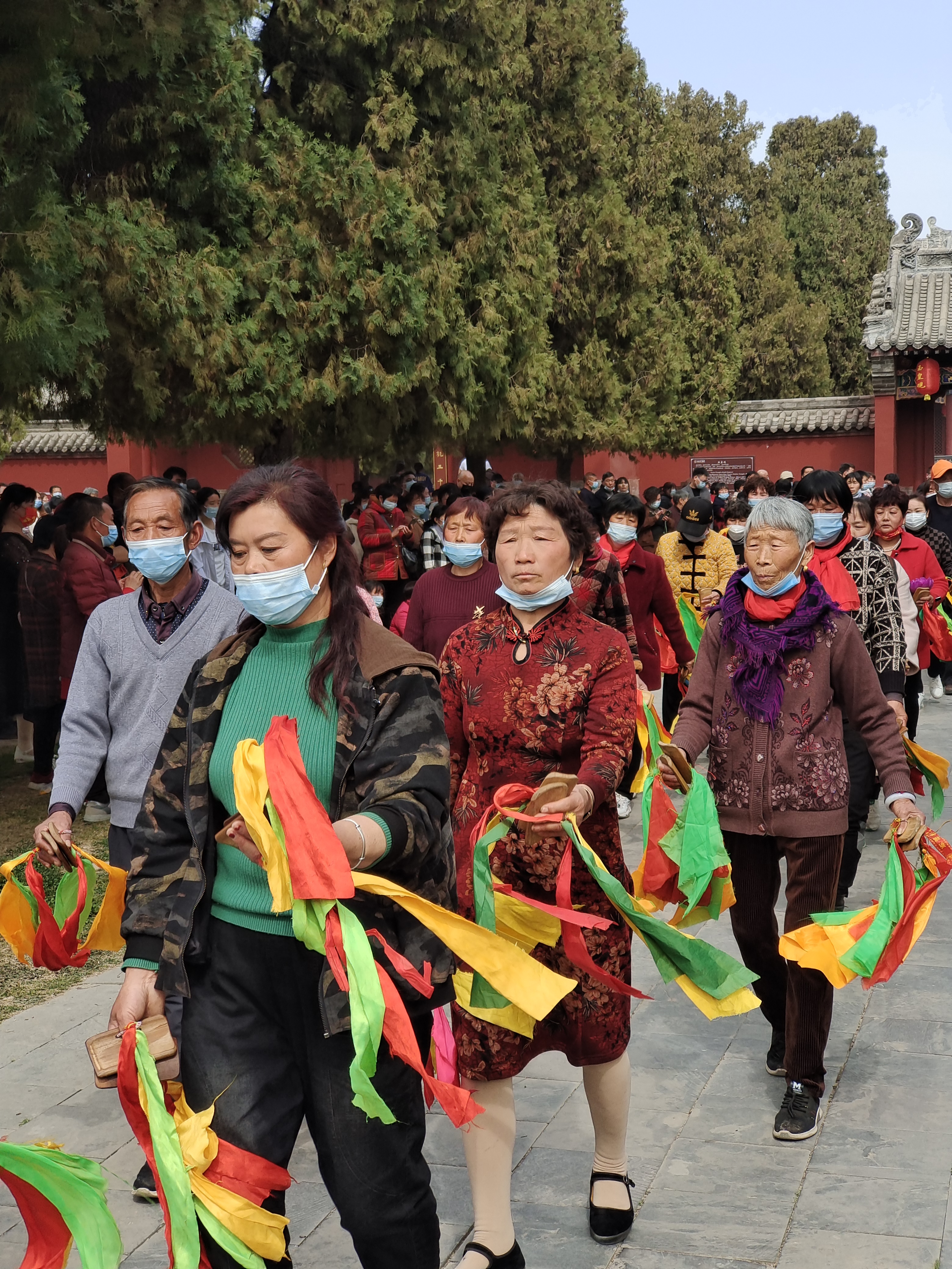 在疫情防控背景下,太昊陵中的子孫窯和岳飛觀暫時(shí)關(guān)閉。人們路過“子孫窯”時(shí),會(huì)不自覺摸摸墻角;路過岳飛觀時(shí),會(huì)雙手合十,帶孩子的會(huì)講岳飛的故事。變化之中,一些不變的照常進(jìn)行:往碑刻上貼硬幣,祈求好運(yùn);站在千年耳柏前,向人祖伏羲低聲訴說著心事;繞伏羲大墓一周,添一把土……在淮陽區(qū)各職能部門的努力下,這一古老又現(xiàn)代的盛會(huì)平穩(wěn)又精彩地運(yùn)行著。②5