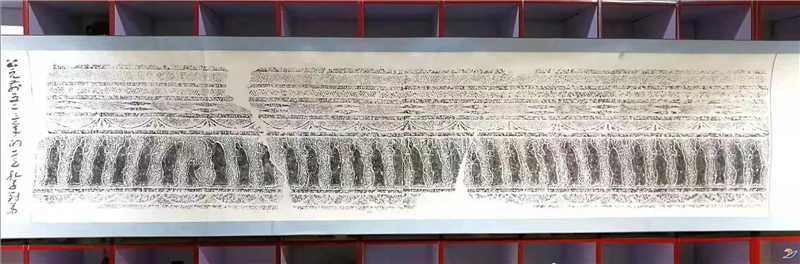 民盟周口市委會(huì)捐贈(zèng)的這方《孔子問(wèn)禮》漢畫(huà)像石拓片整體長(zhǎng)方形,凸面線刻,采用減地線刻技法,圖像構(gòu)圖注重平面化表達(dá),輪廓清晰,造型簡(jiǎn)潔,線條流暢,人物生動(dòng),具有早期中國(guó)卷軸畫(huà)的經(jīng)典圖式。拓片尺幅較大,長(zhǎng)270厘米、高55厘米,共有34位人物。通過(guò)拓片表明,畫(huà)像展現(xiàn)了儒家先師孔子和道教始祖老子交流思想的歷史畫(huà)面。