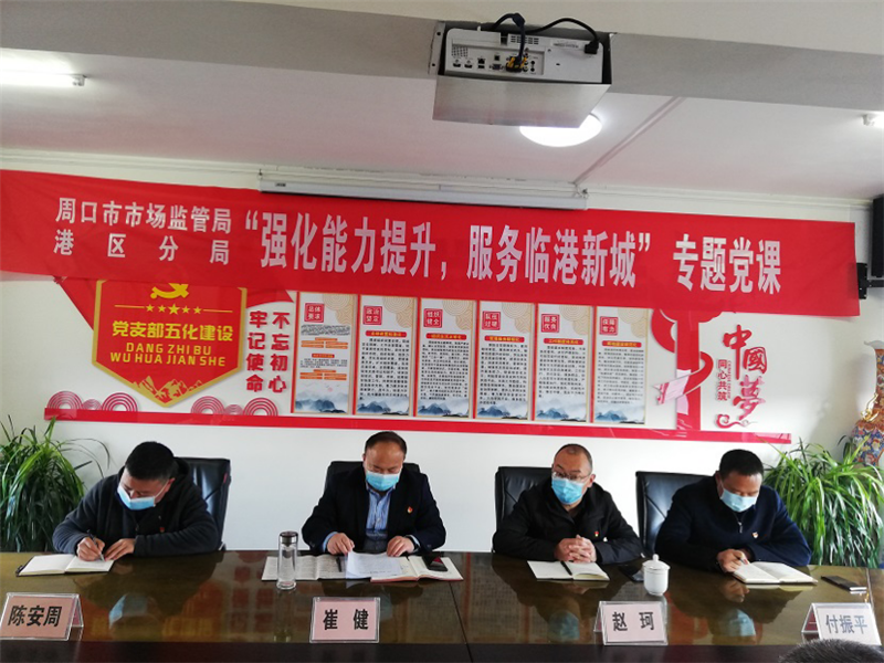 周口市市場監(jiān)管局港區(qū)分局召開“強(qiáng)化能力提升 服務(wù)臨港新城”專題黨課