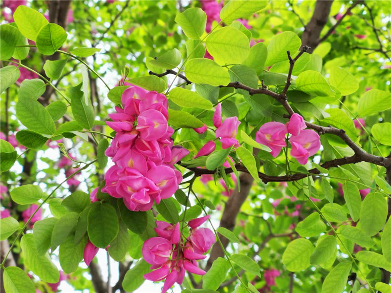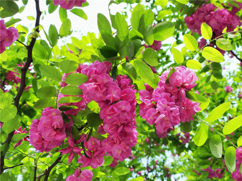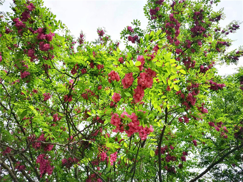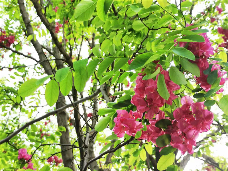 “槐林五月漾瓊花,郁郁芬芳醉萬家?!毖巯拢谥芸跒I河公園,紅色的槐花怒放,芳香四溢,惹人心醉。陽光下,一串串、一簇簇、一樹樹槐花隨風(fēng)搖曳,美不勝收。周口日報·周道客戶端記者 普淑娟 攝