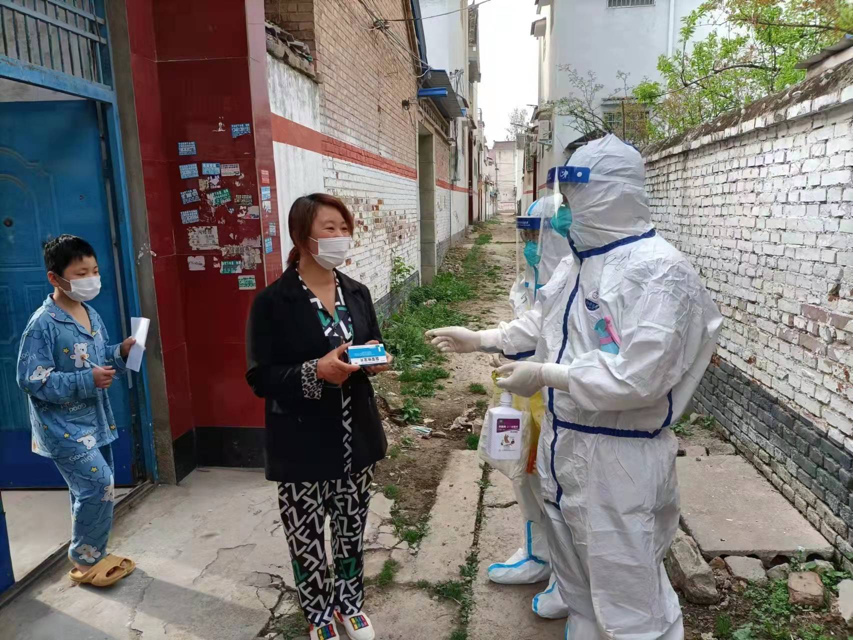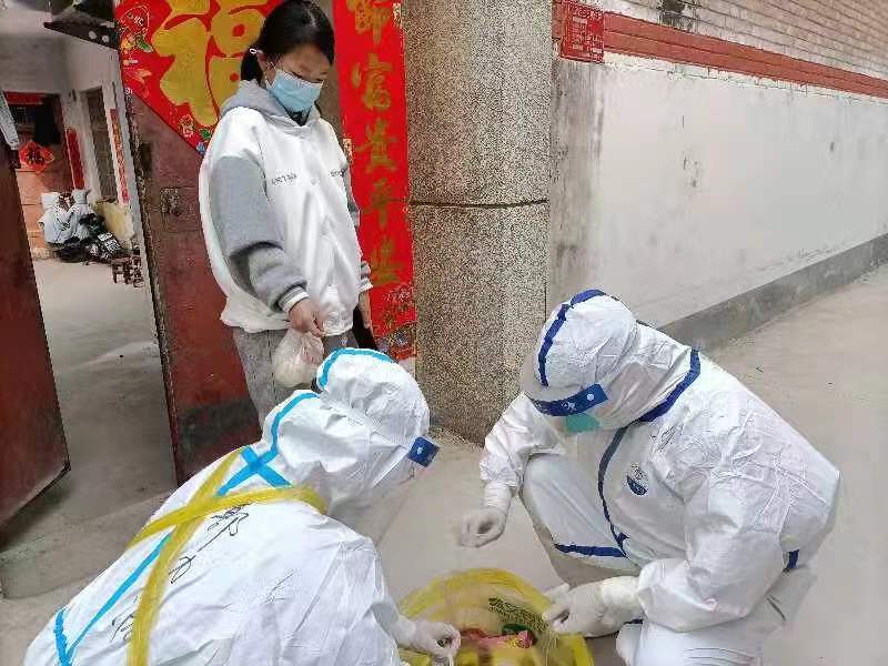 到達(dá)太康后,王群禮被分到了城關(guān)回族鎮(zhèn)封控區(qū)進(jìn)行入戶核酸采集,當(dāng)時(shí)的他也很緊張,認(rèn)真地穿防護(hù)服,熟記采集核酸的每一個(gè)動(dòng)作要領(lǐng),然后投身抗疫最前線。在入戶采樣的時(shí)候,王群禮發(fā)現(xiàn)有一個(gè)小女孩獨(dú)自在家,她每次聽(tīng)到敲門(mén)聲都是先開(kāi)一點(diǎn)縫,悄悄觀察外面,當(dāng)看到是防疫人員時(shí),才慢慢打開(kāi)門(mén)?!拔铱梢钥闯鏊目謶趾蜔o(wú)助,不知道她晚上怕不怕,會(huì)不會(huì)做飯,問(wèn)她怎么吃飯,她也不說(shuō)話,我心里很不是滋味。”從那天開(kāi)始,王群禮每次入戶采核酸的時(shí)候,就幫她帶點(diǎn)吃的,王群禮會(huì)把他的早餐留給她,還把自己的水果、零食也都送給她。