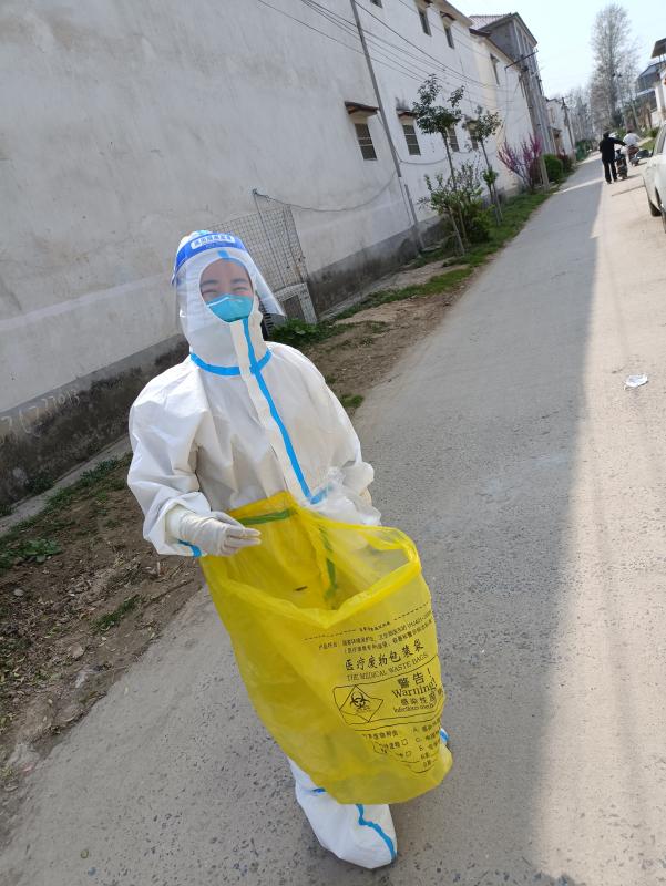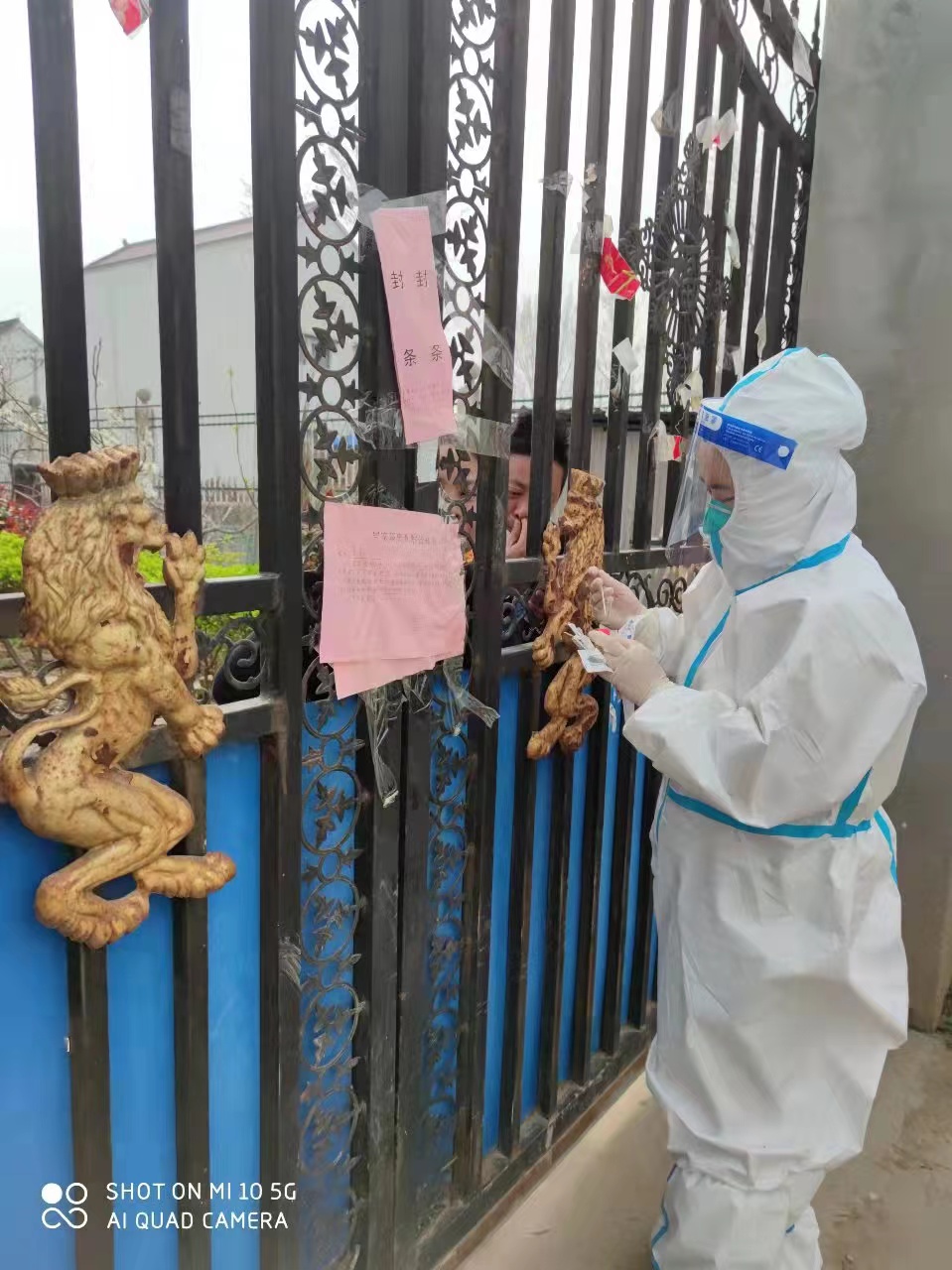 許夢蝶她們?nèi)サ拇宸稚⑤^廣,從凌晨開始一個村挨一個村地跑下去,汗水很快濕透防護(hù)服,一般到下午2點,前來采樣的村民會逐漸變少,但是饑腸轆轆的她卻不能就餐,因為偶爾還會有村民過來采樣,如果脫下再穿防護(hù)服肯定會耽擱村民的時間,“我們本來就是為人民服務(wù)的,我們等等無所謂,不能讓老百姓來等我們”,許夢蝶當(dāng)時這樣想著,然后婉拒了工作人員的就餐邀請,等沒有村民來采樣了再休息。她們吃完飯與大部隊集合的路上,突然隊長接到鄉(xiāng)長的電話說人手不夠讓回去采集封控村,她們立刻掉頭回去,沒有任何怨言,沒有任何要求。到了以后工作人員通知說這個村500多人要入戶采集,她們立即穿上防護(hù)服就開始了工作,和村干部及志愿者相互配合,拿著未集中核酸采樣的群眾名單,不停穿梭在村里的大街小巷、房前屋后、床邊炕頭進(jìn)行現(xiàn)場核酸采樣。臨走時叮囑群眾日常防護(hù)不能大意,勤洗手、勤消毒、戴口罩,卻忘記了我們自己已經(jīng)濕透的衣服還有灌鉛似的雙腿……
