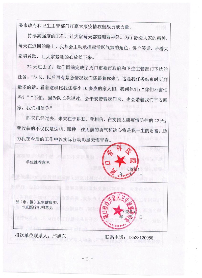 昨天已經(jīng)過去,未來在于耕耘。我相信,在支援太康疫情防控的22天,我收獲的不僅僅是這些。那種一往無前的勇氣和決心將是我一生的財富,助我在今后的工作中以實際行動彰顯無悔者春。②16