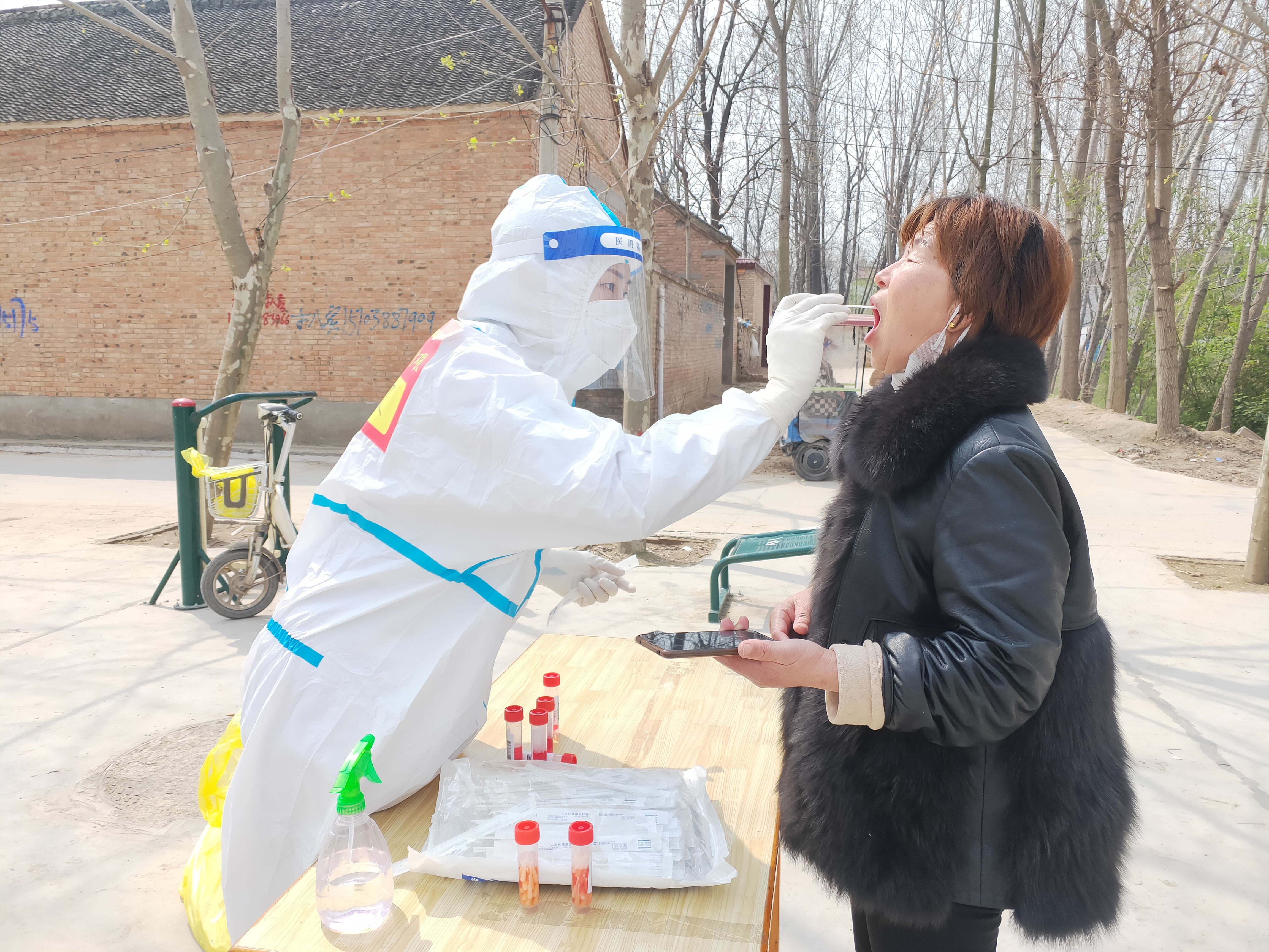 王文文和同事們于當(dāng)日早7點(diǎn)到達(dá)太康廣場進(jìn)行培訓(xùn)。培訓(xùn)結(jié)束后,在對接人的引領(lǐng)下,王文文帶領(lǐng)分隊(duì)46人前往太康縣張集鎮(zhèn)開展支援工作,主要負(fù)責(zé)張集鎮(zhèn)15個(gè)自然村,每日對近2萬名群眾進(jìn)行核酸采集,他們分為15個(gè)組,一組負(fù)責(zé)一個(gè)采集點(diǎn)。第一天大家都沒有經(jīng)驗(yàn),工作中,王文文不時(shí)接到其他組隊(duì)員的咨詢電話,王文文詳細(xì)地為他們一一解答,保證工作順利開展。