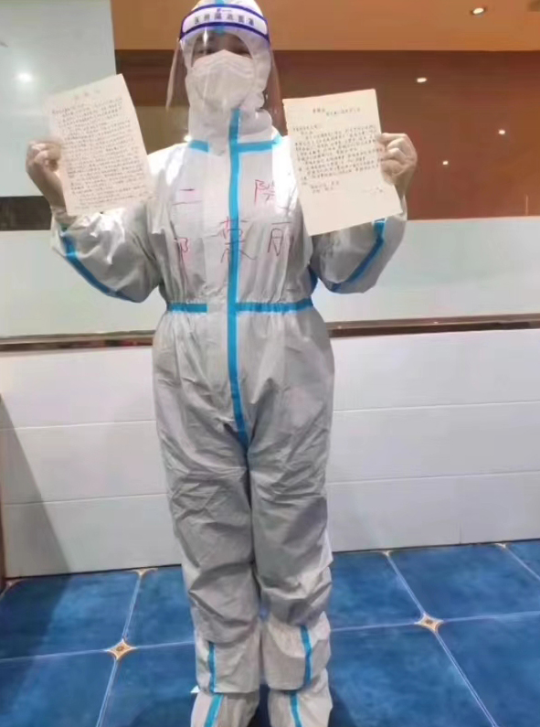2022年1月太康縣出現(xiàn)確診病例密切接觸者,根據防控要求,這次需要隔離的人員多為太康第三中學的學生,接到通知后的郭榮麗再次投入工作。她看到被隔離的孩子在緊張、恐懼的情緒中還在學習,她既心痛又欣慰。郭榮麗的兒子和被隔離的孩子同歲,母親了解孩子,她每天都會和這些孩子聊天,了解孩子的心理狀況,解除孩子的恐懼心理,很快孩子們就和她熟悉起來。整個隔離期間,這些孩子有心里話也會告訴郭榮麗。觀察結束后,孩子們還給她和醫(yī)護團隊寫了一封感謝信,信中說“我想看看您摘掉口罩后的樣子,我想那是天使的模樣”。