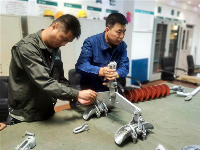 為把學(xué)習(xí)落到實(shí)處,提高班組成員主動(dòng)學(xué)習(xí)的積極性,在當(dāng)日的學(xué)習(xí)中,經(jīng)驗(yàn)豐富的老師傅還手把手地帶領(lǐng)青年員工對(duì)金具進(jìn)行現(xiàn)場(chǎng)組裝。他們積極討論,相互切磋,取長(zhǎng)補(bǔ)短。