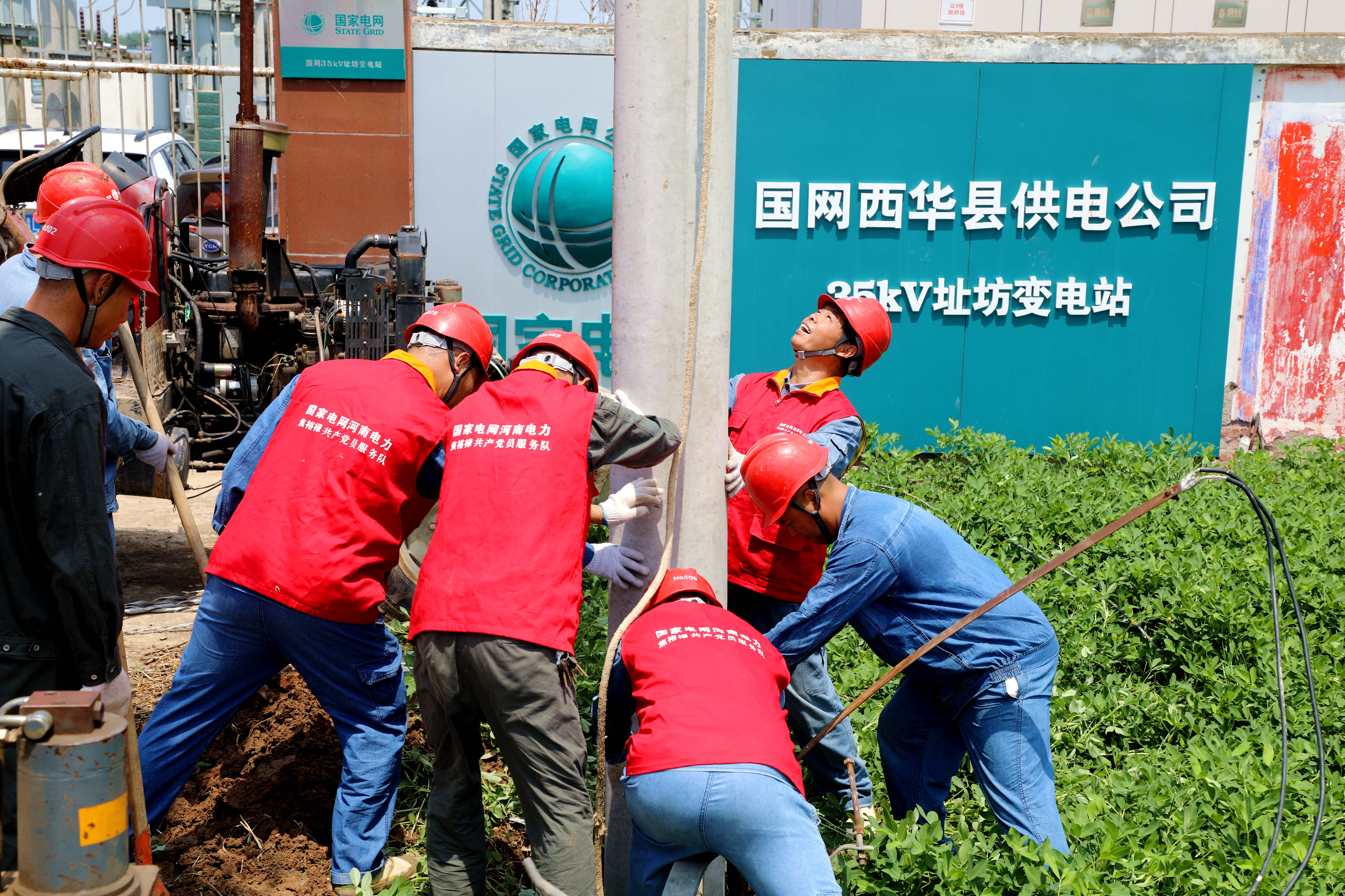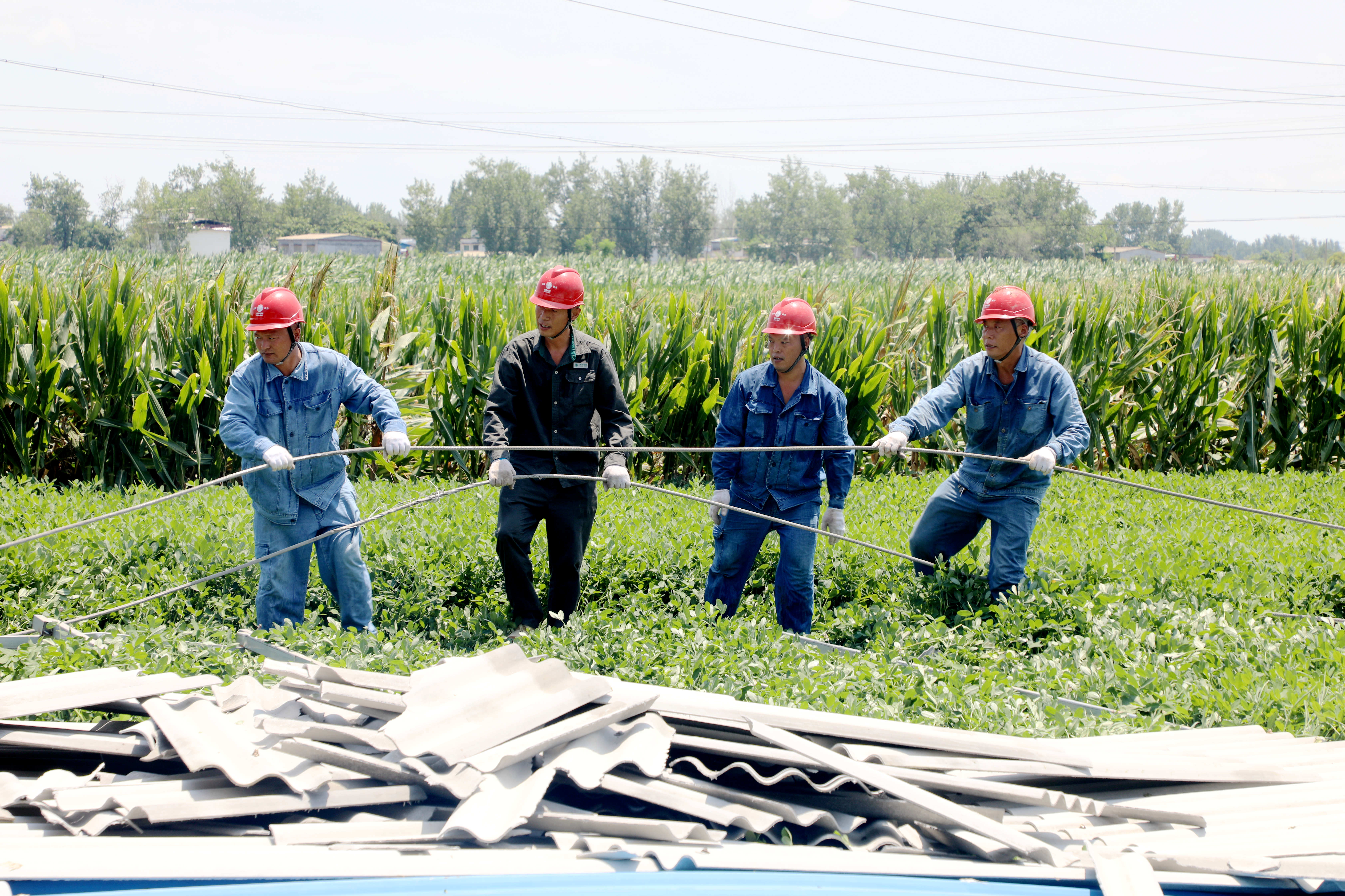 在35千伏址坊變電站10千伏灣張線出線倒桿緊急搶修現(xiàn)場,焦裕祿共產(chǎn)黨員服務(wù)隊(duì)沖在最前線,戰(zhàn)高溫、斗酷暑,將原電桿位置遷移,在安全地點(diǎn)重新立桿接線,高效完成牽引、挖坑、立桿、填土、鞏固、緊線等搶修工序。經(jīng)過連續(xù)奮戰(zhàn),7月26日20時(shí)06分因?yàn)?zāi)停電線路全面恢復(fù)供電。③9