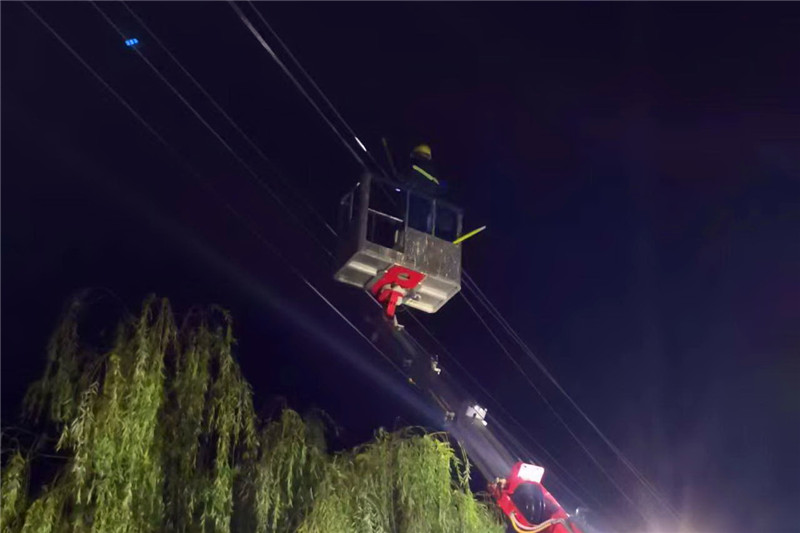 故障發(fā)生后,國網(wǎng)周口供電公司立即啟動惡劣天氣應(yīng)急預(yù)案,并通過手機短信傳達到每位職工。雨勢稍微放緩后,各縣市供電公司迅速派出應(yīng)急搶修分隊,出動搶修人員1389人,搶修車輛303輛。在雨中,大家分工協(xié)作,爭分奪秒完成每一道工序,一部分搶修人員排查線路,消除安全隱患,防止次生災(zāi)害;一部分搶修人員快速投入到搶修工作中。