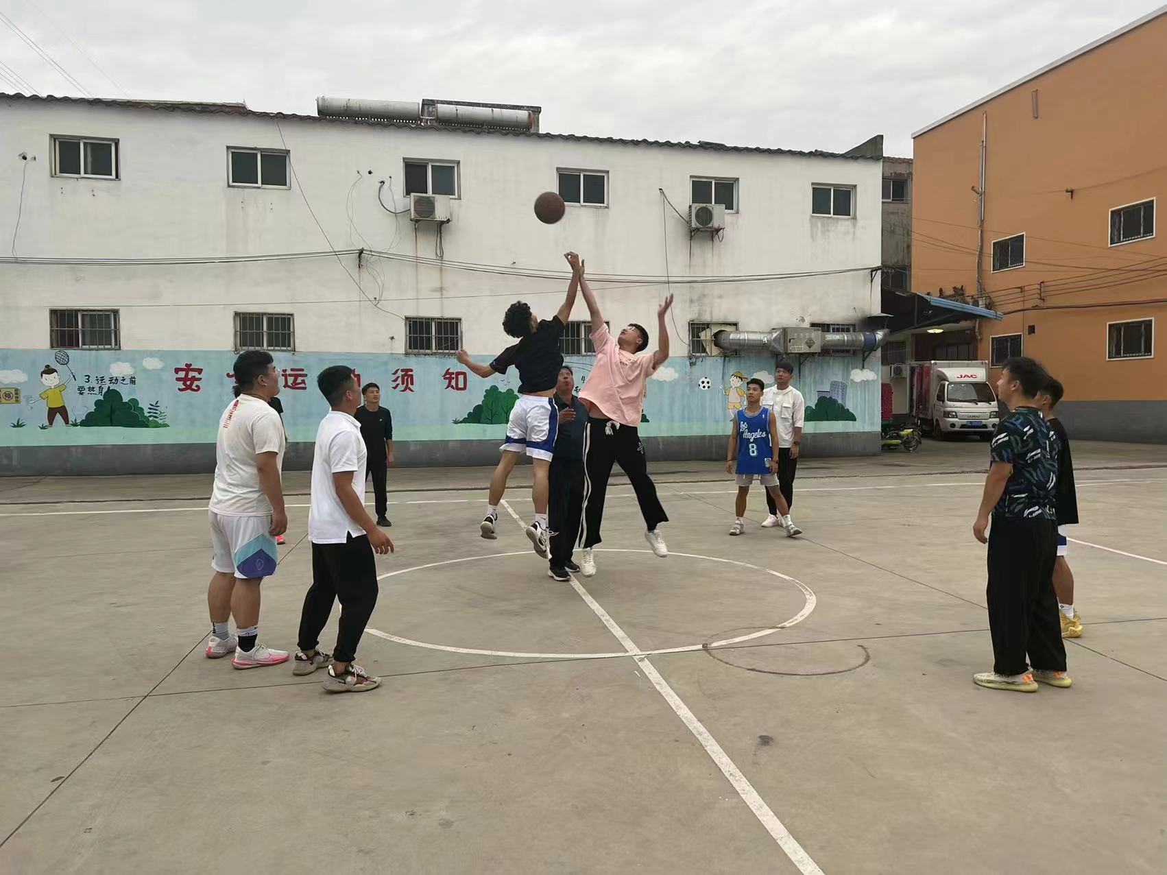 淮河路辦事處社區(qū)干部和周口技師學(xué)院的老師們?cè)谫悎錾蠐]汗如雨、你爭我奪,比賽緊張而熱烈。雙方隊(duì)員拼搶積極,防守嚴(yán)密,既有遠(yuǎn)投的三分,跨步飛躍的上籃;又有穿插籃下精巧的勾手,還有忽左忽右轉(zhuǎn)身帶球的突破。一場籃球賽充分展示了籃球運(yùn)動(dòng)的魅力,賽出了團(tuán)結(jié)和友誼,展現(xiàn)了不言放棄、奮力拼搏的精神,也體現(xiàn)了籃球運(yùn)動(dòng)的廣泛群眾基礎(chǔ)。