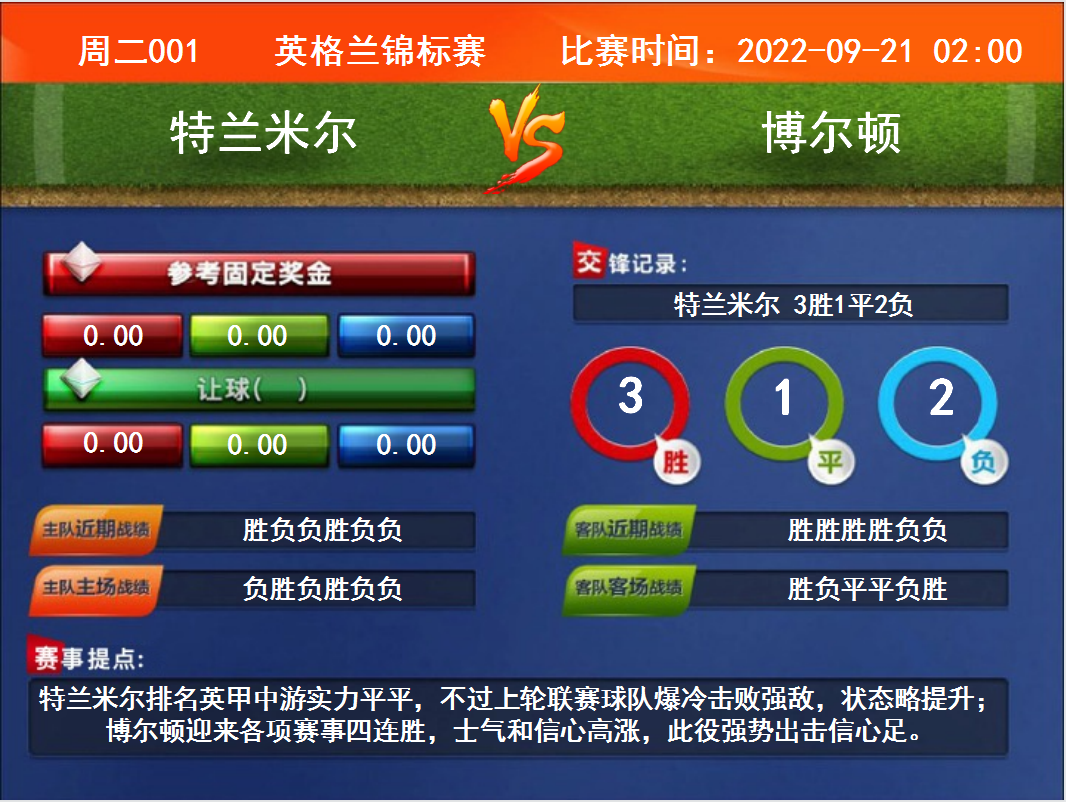 周二001 英格蘭錦標(biāo)賽 特蘭米爾VS博爾頓