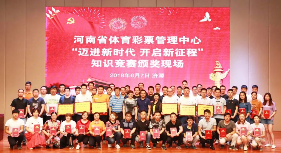 2018年6月,河南省體彩中心“邁進(jìn)新時(shí)代 開啟新征程”知識(shí)競賽頒獎(jiǎng)現(xiàn)場