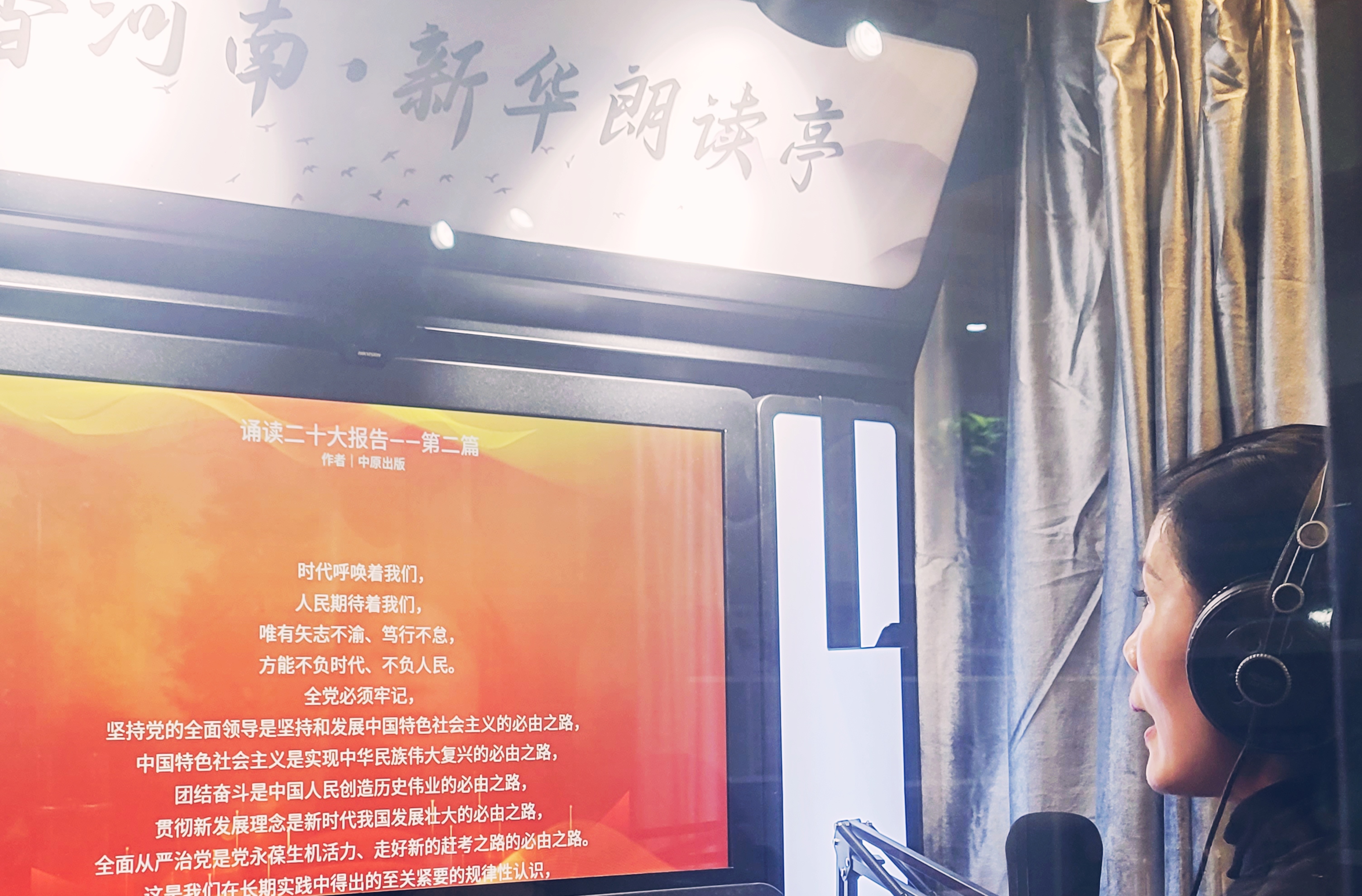 “堅持黨的全面領導是堅持和發(fā)展中國特色社會主義的必由之路……”11月3日,在位于項城市商城路與西大街交叉口的新華書店誦讀亭內(nèi),誦讀愛好者年秋燕正在選讀黨的二十大報告原文,其深情且鏗鏘有力的誦讀聲令人如癡如醉。