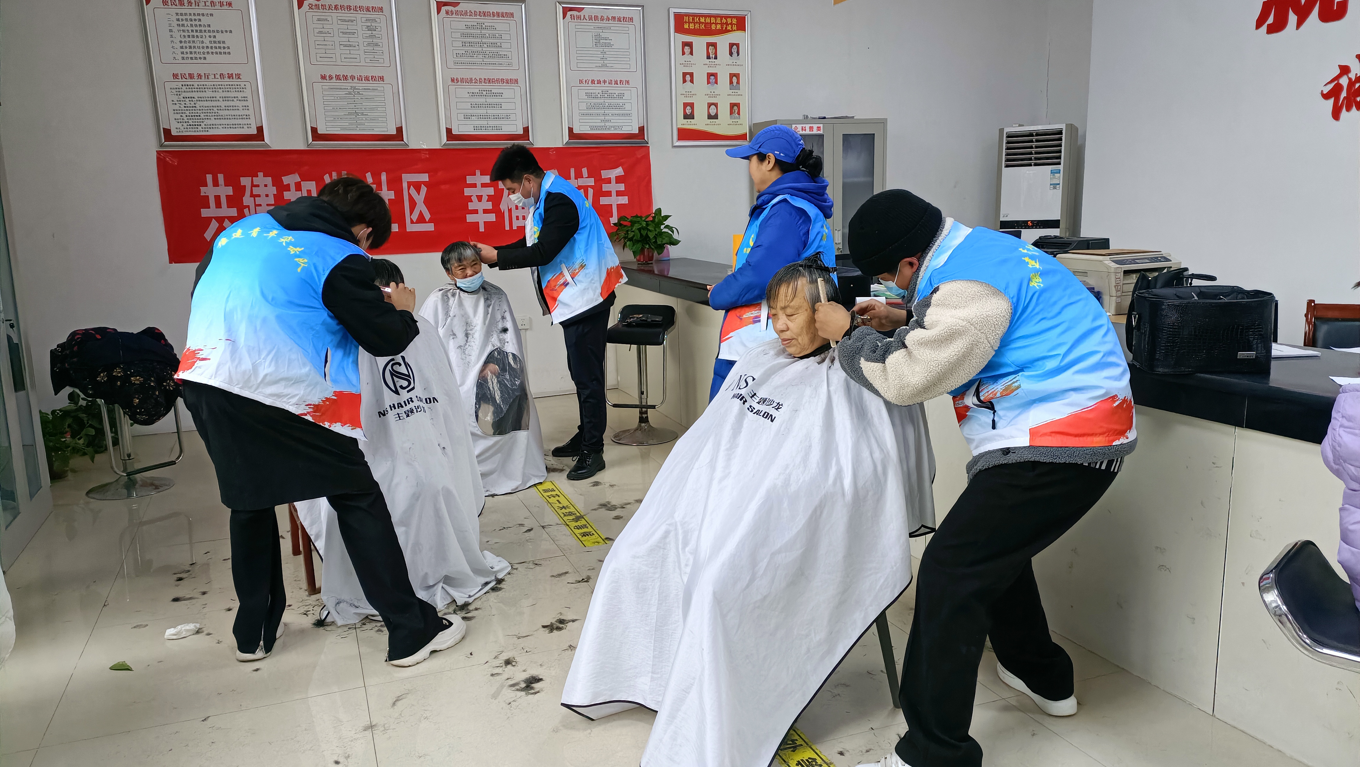 志愿者們一邊為老人們剪著頭發(fā),一邊陪老人們聊聊天、拉拉家常。看著剪完后的發(fā)型,老人們樂得合不攏嘴,一直將“謝謝”掛在嘴邊,紛紛表示在社區(qū)服務(wù)站就能剪一個清爽滿意的發(fā)型,真是太好了。居民李婆婆表示自己出入需要輪椅,想外出理發(fā)很不方便,志愿者們此舉為她解決了個大難題。