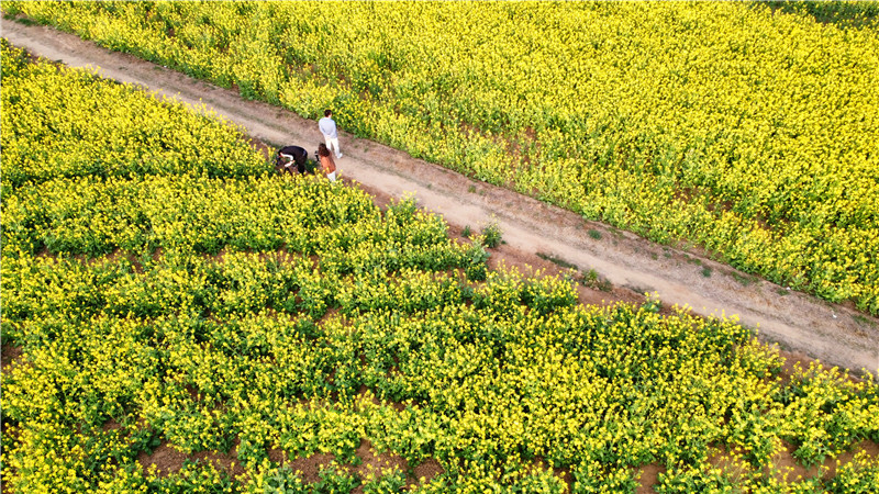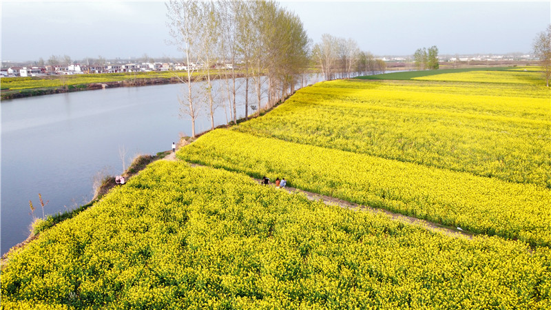 4月2日,春日明媚,沙潁河兩岸一片片金燦燦的油菜花“染黃”了大地,空氣中彌漫著香氣,大片的油菜花和漂亮的村居、田間勞作的農(nóng)民交織在一起,如詩(shī)如畫,美不勝收,讓人心曠神怡。作為春日大自然最美的顏色,成片的油菜花海成為旅游愛好者追逐的風(fēng)景。