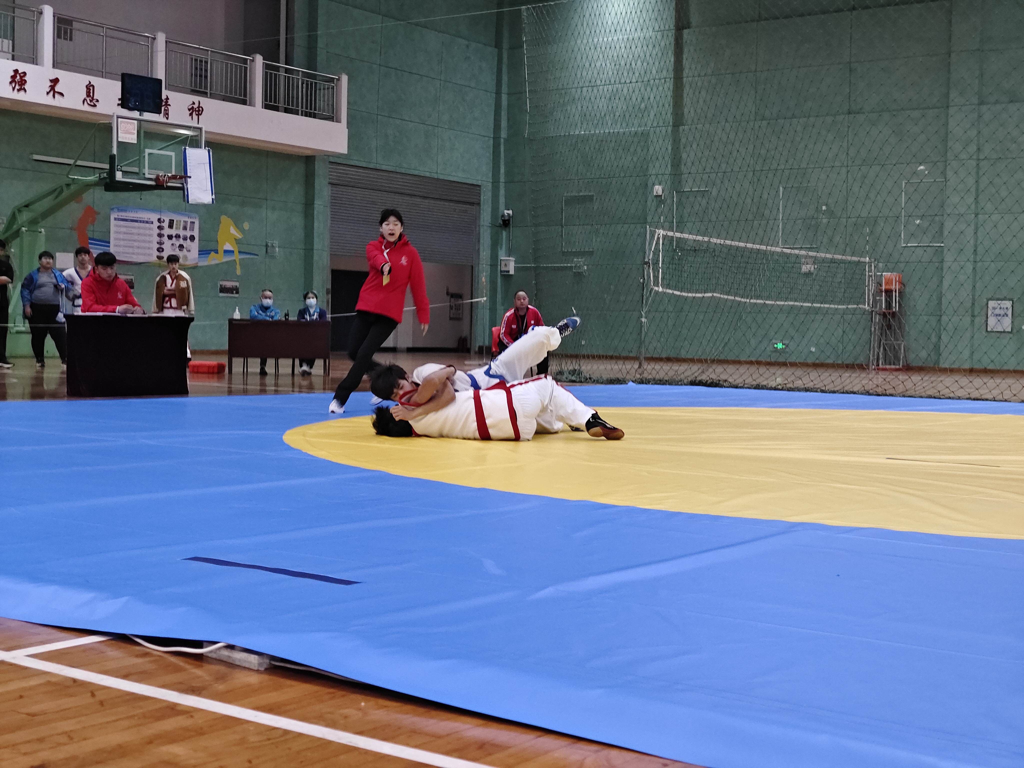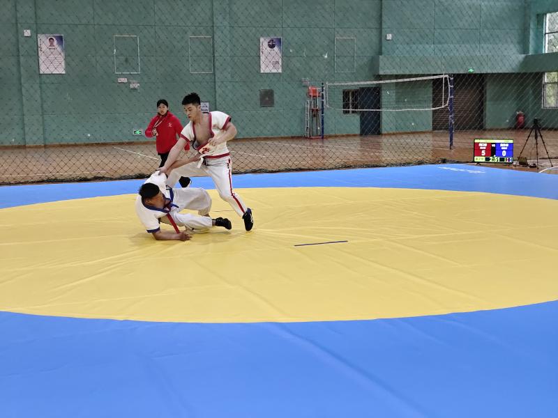 當日,河南省第九屆少數(shù)民族傳統(tǒng)體育運動會民族式摔跤競賽項目在周口師范學院老體育館開賽。絆跤是首個登場的跤種,9支代表隊參賽。該跤種以體重級別分組進行雙敗淘汰賽,共有52kg、62kg、74kg、87kg和87kg以上等5個公斤級,對應(yīng)5個一等獎。經(jīng)過激烈角逐,來自漯河市、周口市和河南大學代表隊的5名選手獲得一等獎,我市選手李祥楷、劉小濤分別獲62kg、87kg一等獎。
