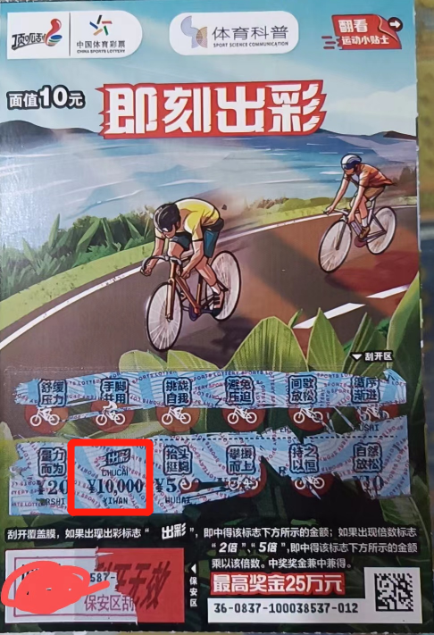 近日,周口項(xiàng)城市購(gòu)彩者王先生(化名)4116810165體彩實(shí)體店刮頂呱刮“即刻出彩”即開(kāi)型彩票喜中獎(jiǎng)金10000元。