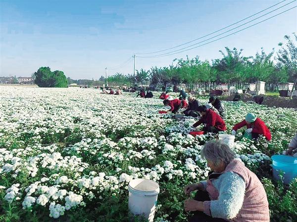 秋菊有佳色,裛露掇其英。11月7日上午,記者走進(jìn)鹿邑縣宋河鎮(zhèn)張辛村,映入眼簾的是一片絢爛的菊花海洋,一團(tuán)團(tuán)、一簇簇的菊花競相盛開,伴著習(xí)習(xí)秋風(fēng),輕輕搖曳,淡雅的菊香溢滿田野。黃澄澄的菊花叢中,村民們正忙著采摘,大家邊聊邊忙活,呈現(xiàn)出一派繁忙的景象。