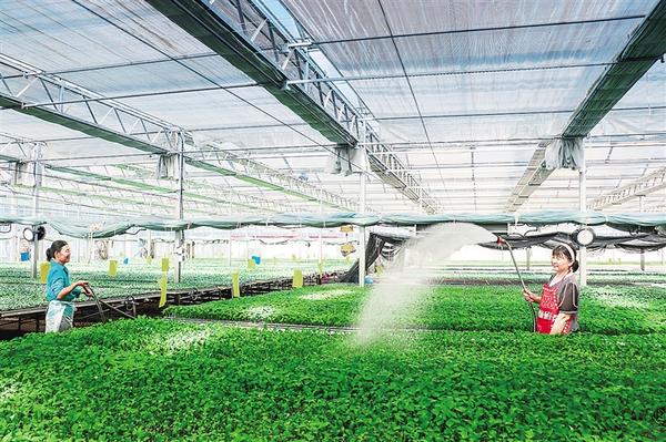 連日來,河南農(nóng)業(yè)大學(xué)扶溝蔬菜研究院的工作人員多次為蔬菜種苗噴水降溫。為降低高溫對(duì)蔬菜種苗造成的不利影響,該院采取多種措施為大棚降溫,保證蔬菜種苗健康成長。谷志方 攝