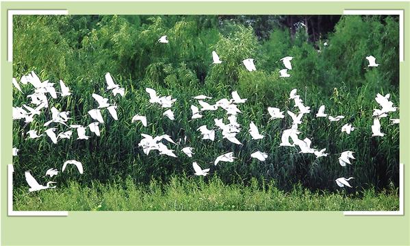 連日來(lái),大批白鷺聚集在川匯區(qū)大慶路橋東側(cè)濕地,遠(yuǎn)遠(yuǎn)望去,百鳥(niǎo)飛翔,一派人與自然和諧共生的景象。何延成 攝