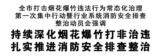 會議指出,安全重于泰山。各級各部門要準確把握我市當前煙花爆竹和消防安全的嚴峻形勢,深刻汲取事故慘痛教訓,時刻繃緊思想之弦,緊盯系統(tǒng)性風險和機制性問題,持續(xù)深化煙花爆竹打非工作,扎實推進消防安全排查整治,最大限度防范遏制各類事故發(fā)生,全力保障人民群眾生命財產安全和社會大局穩(wěn)定。