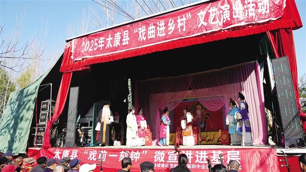 初冬時(shí)節(jié),陽光和煦。近日,太康縣道情劇團(tuán)開展送戲下鄉(xiāng)活動(dòng),在轉(zhuǎn)樓鎮(zhèn)周莊村為群眾上演了《珍珠塔》《王金豆借糧》等經(jīng)典道情劇目,豐富了群眾的精神文化生活。圖為《珍珠塔》演出現(xiàn)場。記者 張洪濤 攝