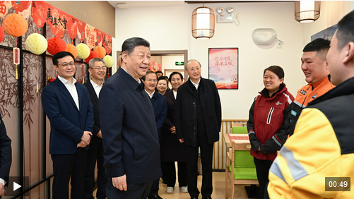 10日上午,習近平總書記來到北京市西城區(qū)新街口街道父母食堂考察。見到在這里休息的3名快遞小哥,習近平關切詢問他們跑快遞多久了、工作累不累、收入怎么樣、春節(jié)回不回家,為他們付出的辛勞和作出的貢獻點贊。習近平說,你們滿足千家萬戶需求,城市運轉(zhuǎn)離不開你們,希望你們都能夠生活得好、工作得好。習近平強調(diào),各級黨委和政府一定要關心新就業(yè)群體,為他們的生活、工作、學習提供好服務。