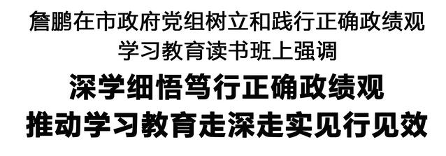 本報訊(記者 李鳳霞)根據(jù)樹立和踐行正確政績觀學習教育工作安排,日前,市政府黨組采取領讀領學、集中自學和交流研討相結(jié)合的方式,舉辦樹立和踐行正確政績觀學習教育讀書班。市長、市政府黨組書記詹鵬主持并講話,強調(diào)要深刻領會習近平總書記關于樹立和踐行正確政績觀的重要論述,增強貫徹落實的政治自覺、思想自覺和行動自覺,推動學習教育走深走實、見行見效,確保“十五五”開好局、起好步。