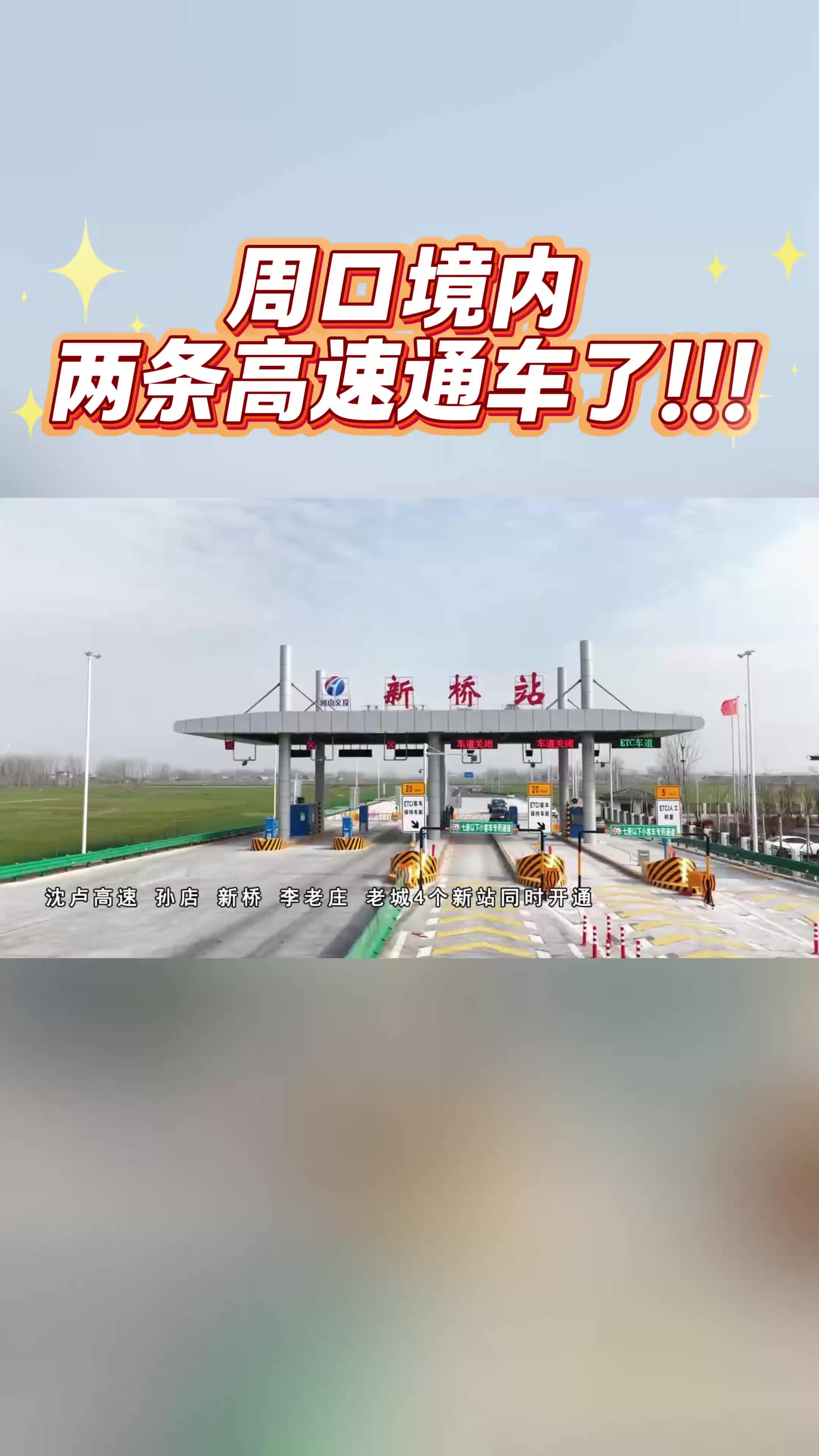 12月30日,沈盧高速、蘭沈高速周口段通車,周口新增2條高速。6個收費站,助力區(qū)域路網加密與經濟協(xié)同發(fā)展。