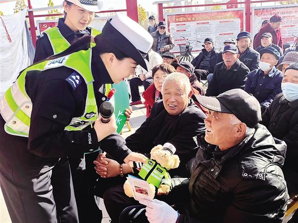 11月28日,民警將“交警小熊”送給一位村民。當(dāng)日,商水縣公安局交通警察大隊組織民警、輔警,攜手縣豫劇中心走進湯莊鄉(xiāng)西趙橋村,開展“美麗鄉(xiāng)村行”交通安全宣傳活動,通過營造宣傳氛圍,讓群眾自覺遵守法律法規(guī),安全文明出行。