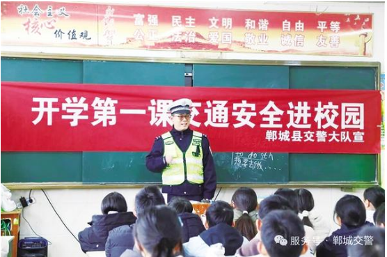 3月5日,民警為師生講解交通安全常識(shí)。當(dāng)日,鄲城縣公安局交通管理大隊(duì)宣傳小分隊(duì)走進(jìn)轄區(qū)第三實(shí)驗(yàn)小學(xué),為全校師生送上了一堂生動(dòng)有趣的交通安全“開學(xué)第一課”,切實(shí)增強(qiáng)學(xué)生的交通安全意識(shí)和自我防護(hù)能力,為校園周邊道路交通安全筑牢防線。