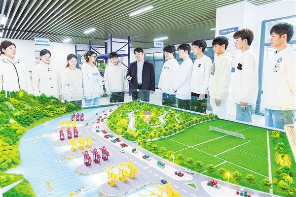 師生在學(xué)?!爸腔鄯抡鎸?shí)訓(xùn)室”了解周口港建設(shè)。近日,周口市港航產(chǎn)業(yè)發(fā)展商會(huì)、周口城市職業(yè)學(xué)院戰(zhàn)略合作暨“AI+港航創(chuàng)新中心”簽約揭牌。這是我市又一家職業(yè)院校參與周口航運(yùn)發(fā)展、校企深度合作的生動(dòng)實(shí)踐。記者 劉華志 攝影