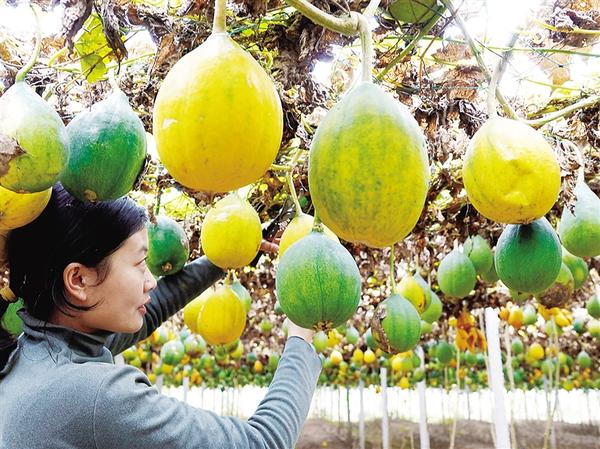 11月11日,記者在周營鎮(zhèn)謝營行政村一處生態(tài)瓜蔞產(chǎn)業(yè)基地看到,瓜蔞支架上藤蔓纏繞,一個(gè)個(gè)沉甸甸、金黃色的瓜蔞如同一盞盞燈籠懸掛在空中。村民正忙著采摘瓜蔞,整個(gè)基地呈現(xiàn)一派喜人的豐收景象。
