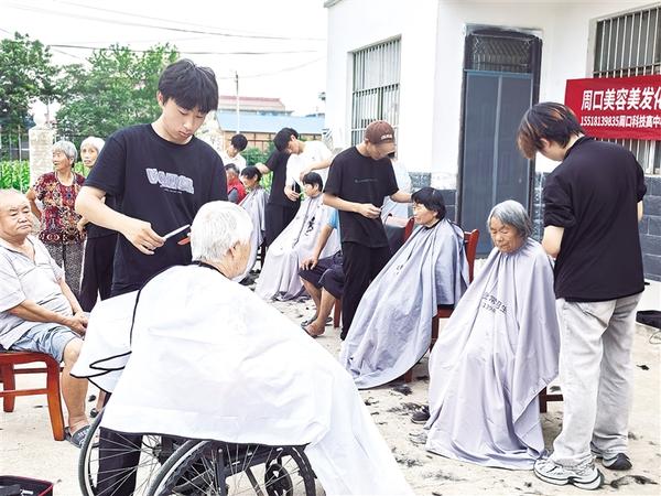 “我還是頭一次享受理發(fā)師上門(mén)服務(wù),太高興了?!?月30日下午,沈丘縣卞路口鄉(xiāng)張保元村村民馬桂榮撫摸著剛剪過(guò)的頭發(fā),臉上樂(lè)開(kāi)了花。當(dāng)日,張保元村駐村第一書(shū)記劉會(huì)見(jiàn)組織周口科技職業(yè)高中的劉宇、李杰等7名志愿者來(lái)到張保元村開(kāi)展義剪活動(dòng)。