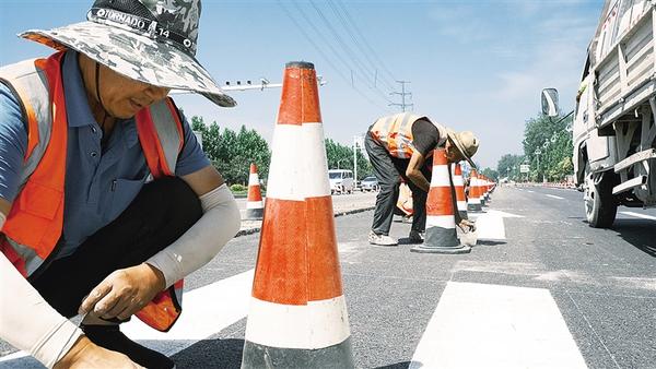 連日來,西華縣華興大道、中原路升級改造項(xiàng)目建設(shè)如火如荼。項(xiàng)目完工后,將進(jìn)一步提升道路通行能力,助力城市“顏值”與品質(zhì)雙升級。圖為工人在施工現(xiàn)場固定反光錐。