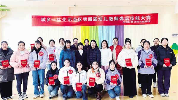 為進(jìn)一步提升幼兒教師的專業(yè)技能,近日,市城鄉(xiāng)一體化示范區(qū)社會事務(wù)管理局舉辦第四屆幼兒教師彈唱技能大賽,吸引34名幼兒教師參加。圖一為選手展示才藝。圖二為獲獎(jiǎng)選手合影留念。