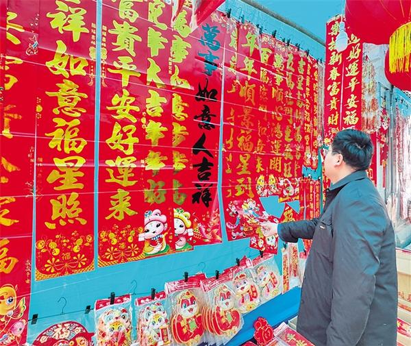 1月11日,市民在挑選對(duì)聯(lián)。當(dāng)日,記者在中心城區(qū)走訪(fǎng)時(shí)看到,琳瑯滿(mǎn)目的春節(jié)飾品已火熱上市,不少商家把一個(gè)個(gè)大紅燈籠高高掛起,市民采購(gòu)年畫(huà)、福字、對(duì)聯(lián)、窗花、中國(guó)結(jié)等春節(jié)飾品,“囤貨”迎春節(jié)。