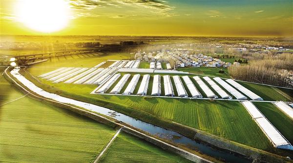 1月16日,在扶溝縣柴崗鄉(xiāng)梅橋村,曲折蜿蜒的幸福河環(huán)繞村旁,河岸一側(cè)整齊的蔬菜大棚在冬日暖陽(yáng)照耀下閃閃發(fā)光,一幅鄉(xiāng)村振興嶄新畫(huà)卷躍然眼前。