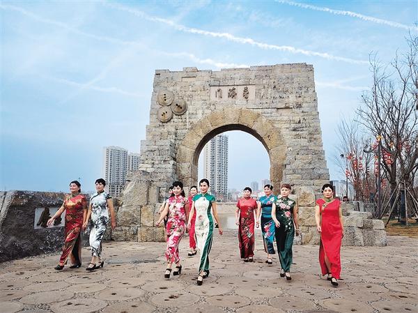 1月14日,身著各色旗袍的模特冒著嚴(yán)寒在南寨歷史文化街區(qū)普濟(jì)門(mén)前進(jìn)行模特走秀表演,為冬日的城區(qū)增添了一抹亮麗色彩。