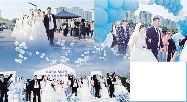 為慶祝新中國成立75周年,大力推進移風易俗,倡導新型婚育文化,9月24日,以“家國同慶、見證幸?!睘橹黝}的2024年項城市集體婚禮在該市吉祥湖公園舉行。當天,來自不同行業(yè)、不同崗位的12對新人喜結連理,用實際行動爭做文明新風的倡導者、踐行者、推動者。圖為集體婚禮現場。 ...[詳細]