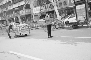 圖① 中心城區(qū)每個路口都存在不同程度的攔車散發(fā)傳單現(xiàn)象,既不文明又不安全。