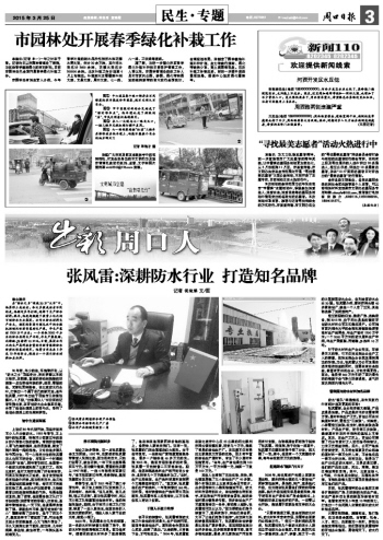 目前,張風(fēng)雷領(lǐng)軍的企業(yè)集團(tuán)正籌備擴(kuò)建新的廠房、引進(jìn)新的先進(jìn)生產(chǎn)線,向生產(chǎn)高科技含量的新型環(huán)保卷材進(jìn)軍。他誓言用未來(lái)5年或10年的努力,打造出一個(gè)由河南人主營(yíng)的國(guó)內(nèi)防水材料知名品牌。
