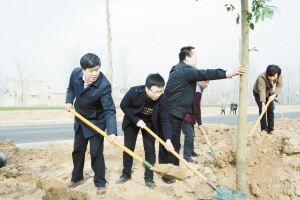 在全區(qū)多個(gè)植樹(shù)點(diǎn),區(qū)四大班子領(lǐng)導(dǎo)與全區(qū)各單位干部職工加入到植樹(shù)護(hù)綠的行動(dòng)中(如圖)。為確保植樹(shù)造林活動(dòng)有效開(kāi)展,川匯區(qū)委、區(qū)政府向48家區(qū)直單位下達(dá)了義務(wù)植樹(shù)任務(wù)通知書(shū),任務(wù)實(shí)施單位包苗木、包栽植、包成活、包管護(hù)。2015年,川匯區(qū)計(jì)劃造林2749畝,森林撫育及改培造林300畝,新建林業(yè)生態(tài)園1處、花卉苗木基地200畝、綠化社區(qū)及林業(yè)生態(tài)示范村9個(gè),打造創(chuàng)模精品線(xiàn)路1條。