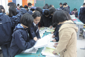 該校將課堂名字定為“求真大課堂”,以“真”字作為學(xué)校一切教育教學(xué)和管理的衡量標(biāo)準(zhǔn)。朱貴華說,求真就是要真教、真學(xué)、真嚴(yán)、真愛、真實(shí)、真會(huì)。為提高課堂教學(xué)效果,該??偨Y(jié)出一套獨(dú)特的課堂教學(xué)方法——“七音和鳴”。分管教學(xué)工作的副校長(zhǎng)徐其運(yùn)用“1234567”,即哆來咪發(fā)唆拉西”來詮釋“七音和鳴”法。“1”就是一個(gè)學(xué)習(xí)目標(biāo);“2”就是提前兩分鐘進(jìn)班,布置2個(gè)任務(wù)(出示目標(biāo)、檢查學(xué)情);“3”就是準(zhǔn)備3個(gè)本子,即學(xué)情檢效本、跟蹤本、糾錯(cuò)本;“4”是4個(gè)維度考評(píng),即高速度、準(zhǔn)確度、干凈度、參與度;“5”是5個(gè)跟蹤,即節(jié)跟蹤、日跟蹤、周跟蹤、月跟蹤、學(xué)期跟蹤,堅(jiān)持“抓緊跟蹤不放松、我在文昌必成功”的教育信念;“6”是6個(gè)環(huán)節(jié),即激情導(dǎo)入、自研自探、合作探究、展示質(zhì)疑、師生點(diǎn)評(píng)、當(dāng)堂檢測(cè);“7”是7個(gè)評(píng)價(jià),即教師的教案、學(xué)生的學(xué)案、練案、觀課記錄的每周業(yè)務(wù)評(píng)價(jià)及對(duì)學(xué)生的即時(shí)性、激勵(lì)性、長(zhǎng)效性評(píng)價(jià)。